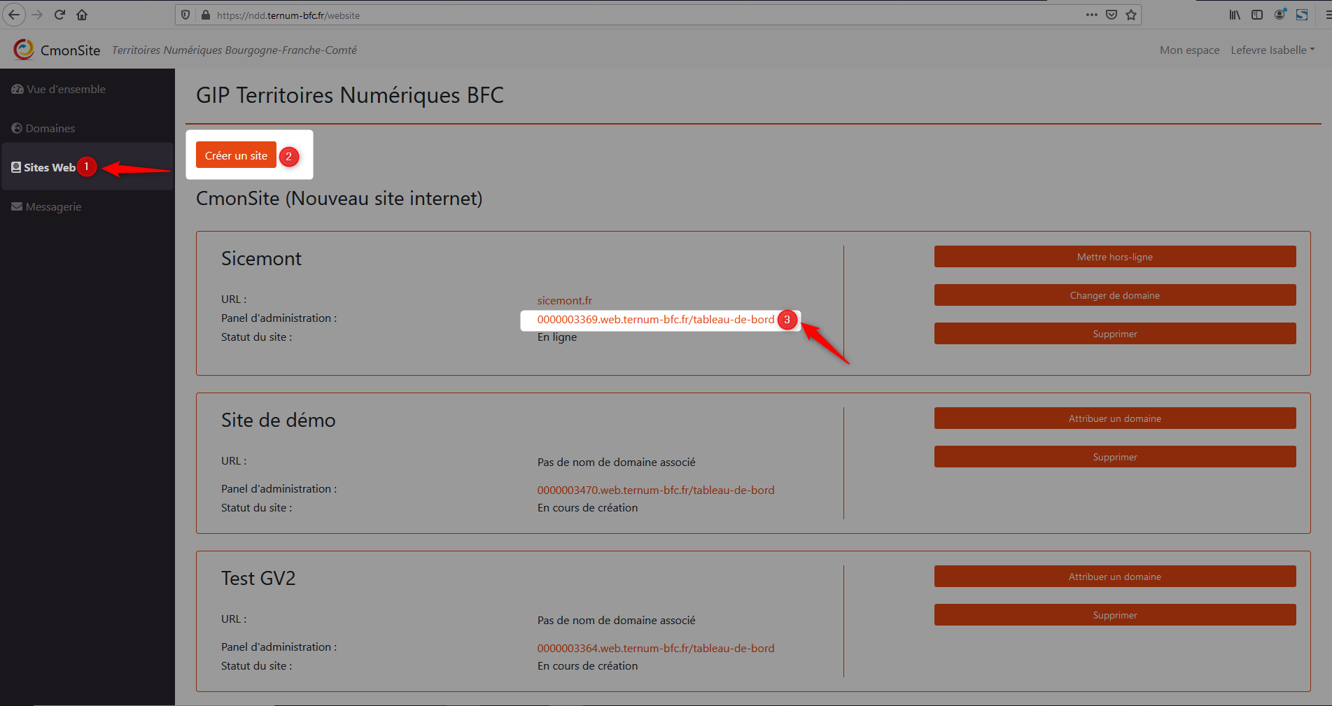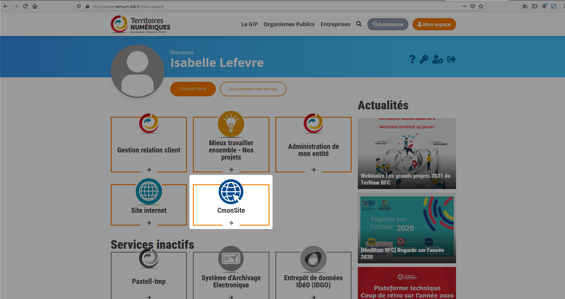 Cliquez ensuite sur le lien de type "000000XXXX.ternum-bfc.fr/tableau-de-bord".