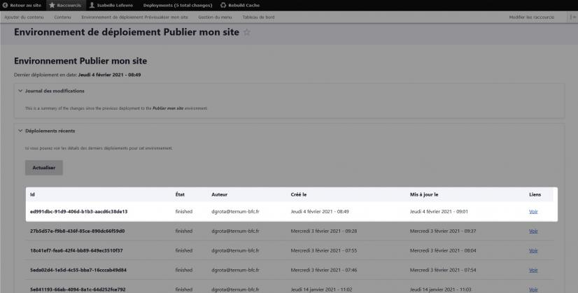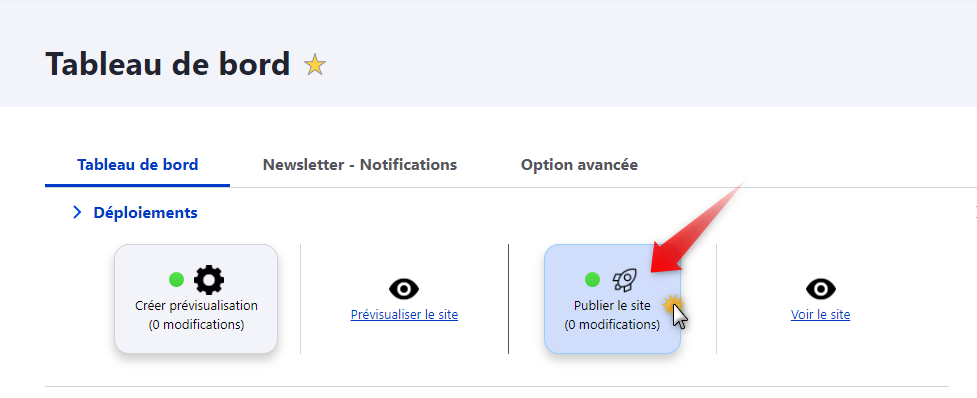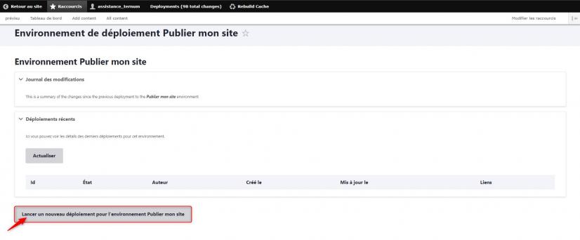 Cliquez sur le bouton "Lancer un nouveau déploiement pour l'environnement Publier mon site".