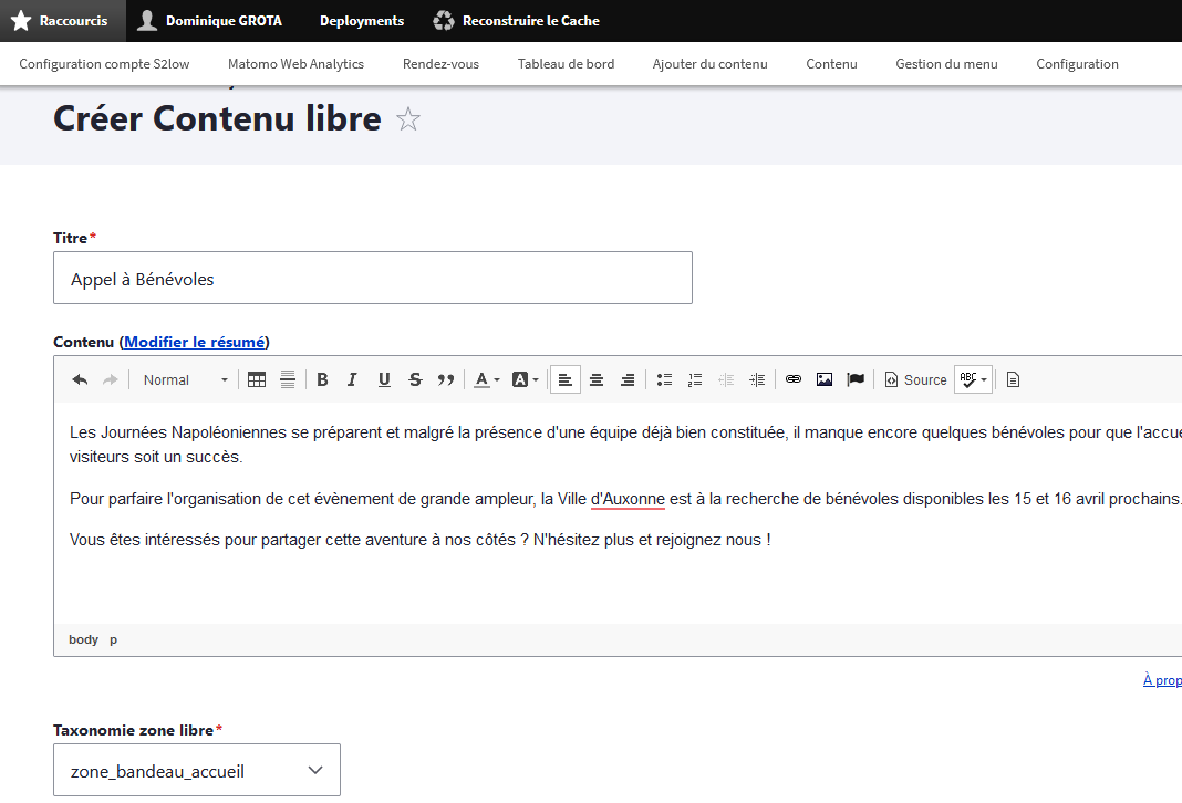 Une nouvelle zone libre Zone_accueil_bandeau a été créée, elle sera affichée par dessus les images du bandeau.