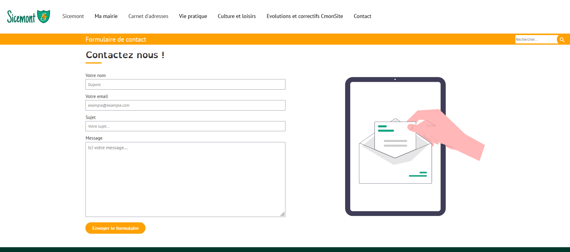 Nous vous proposons un formulaire de contact à ajouter à votre site web. Il se présente sous cette forme :