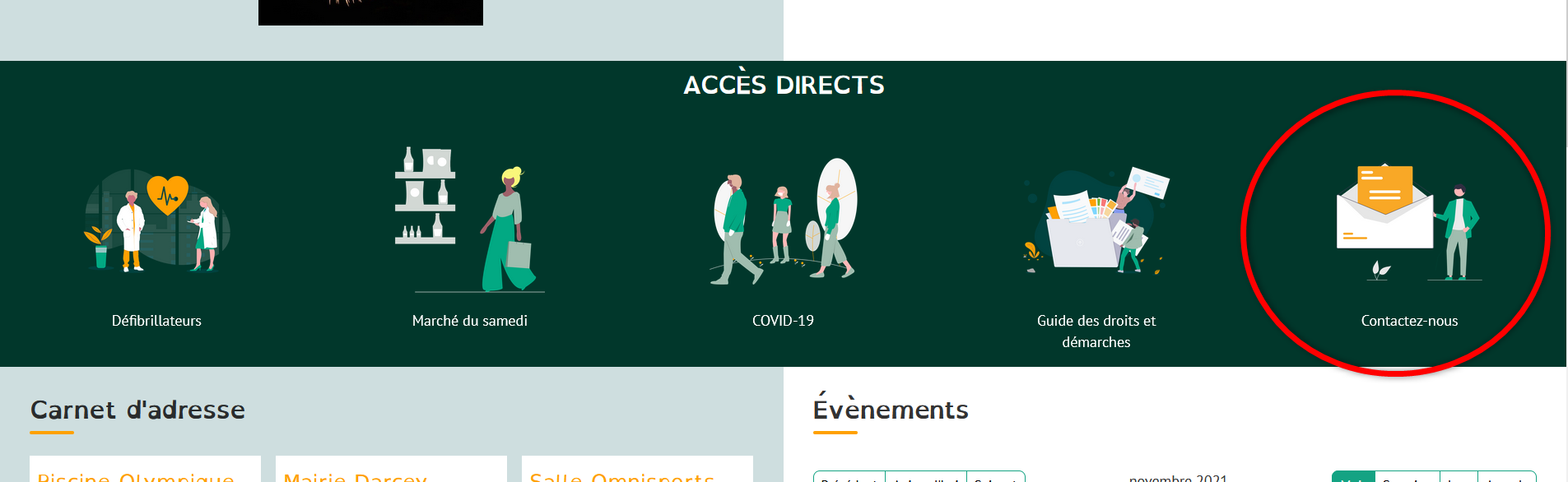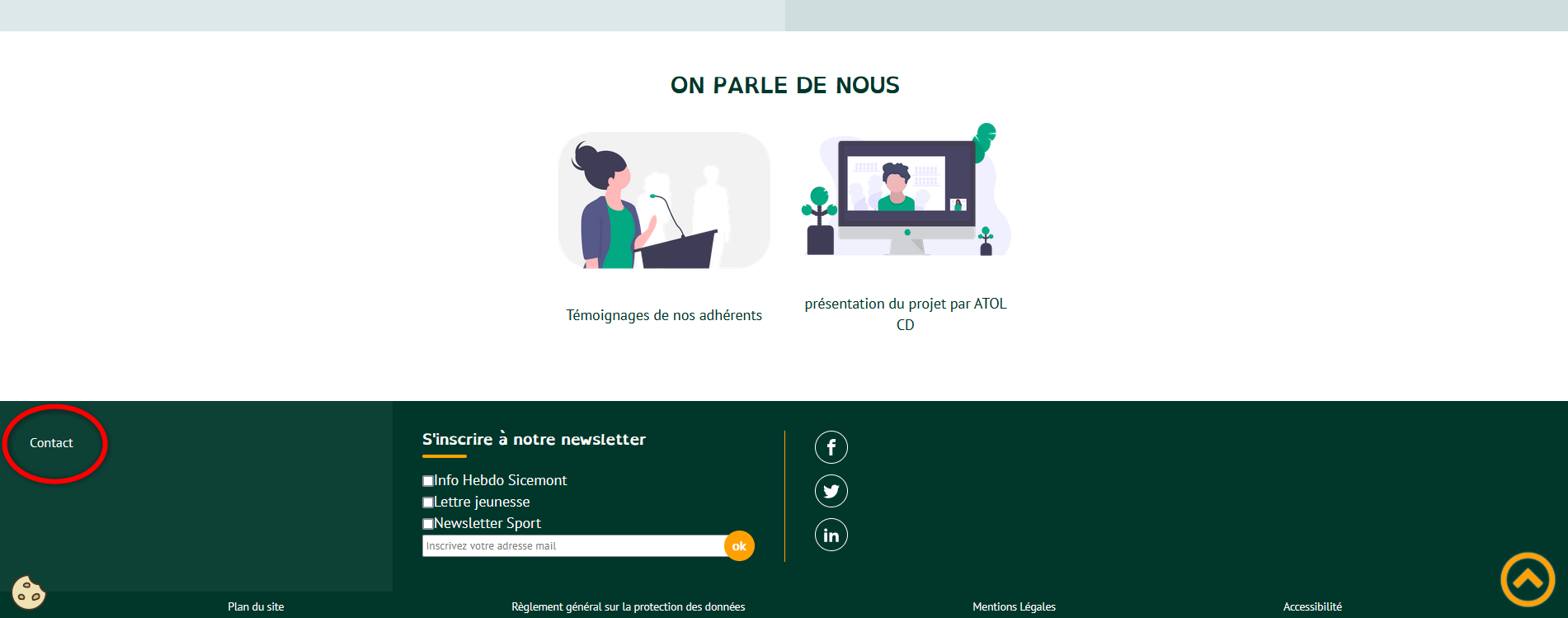 a) dans le menu principal (une rubrique "contact"),
