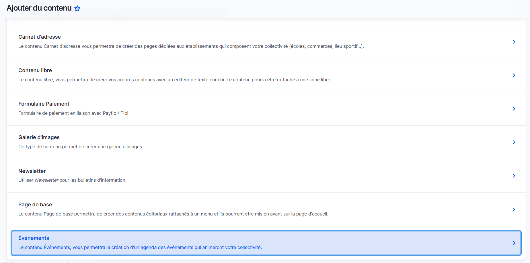 Pour créer un contenu à ajouter à votre site, rendez-vous sur l'onglet "Ajouter du contenu" du tableau de bord. Cliquez ensuite sur l'onglet "Événements" pour accéder à la page de création d'évènements.
