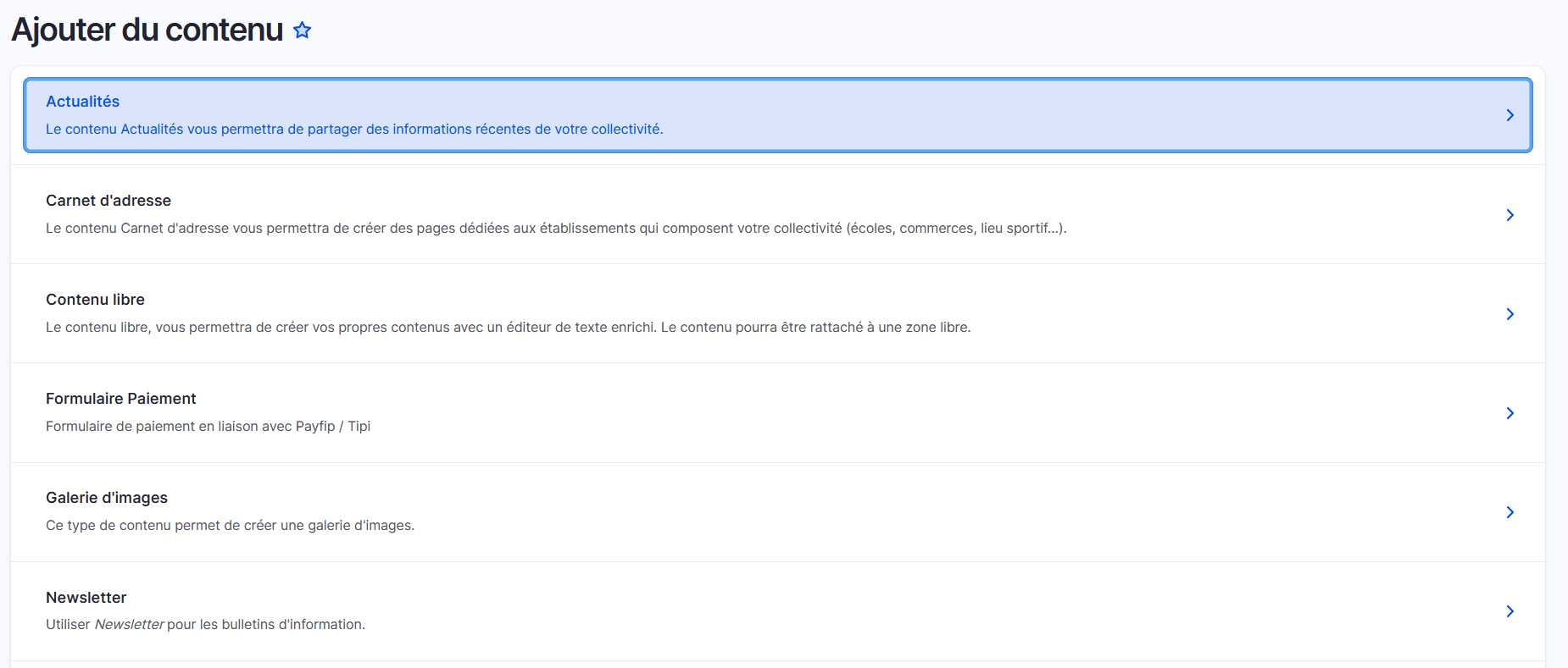 Pour créer un contenu à ajouter à votre site, rendez-vous sur l'onglet "Ajouter du contenu" du tableau de bord.