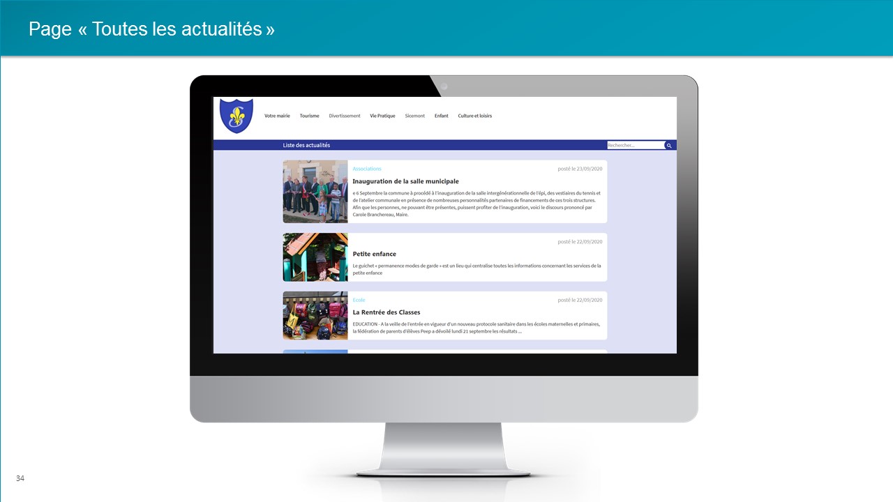 Sur votre page d'accueil, en plus des 4 actualités maximum présentées, il y a un bouton "Toutes les actualités" qui mènent vers la liste de toutes les actualités publiées :