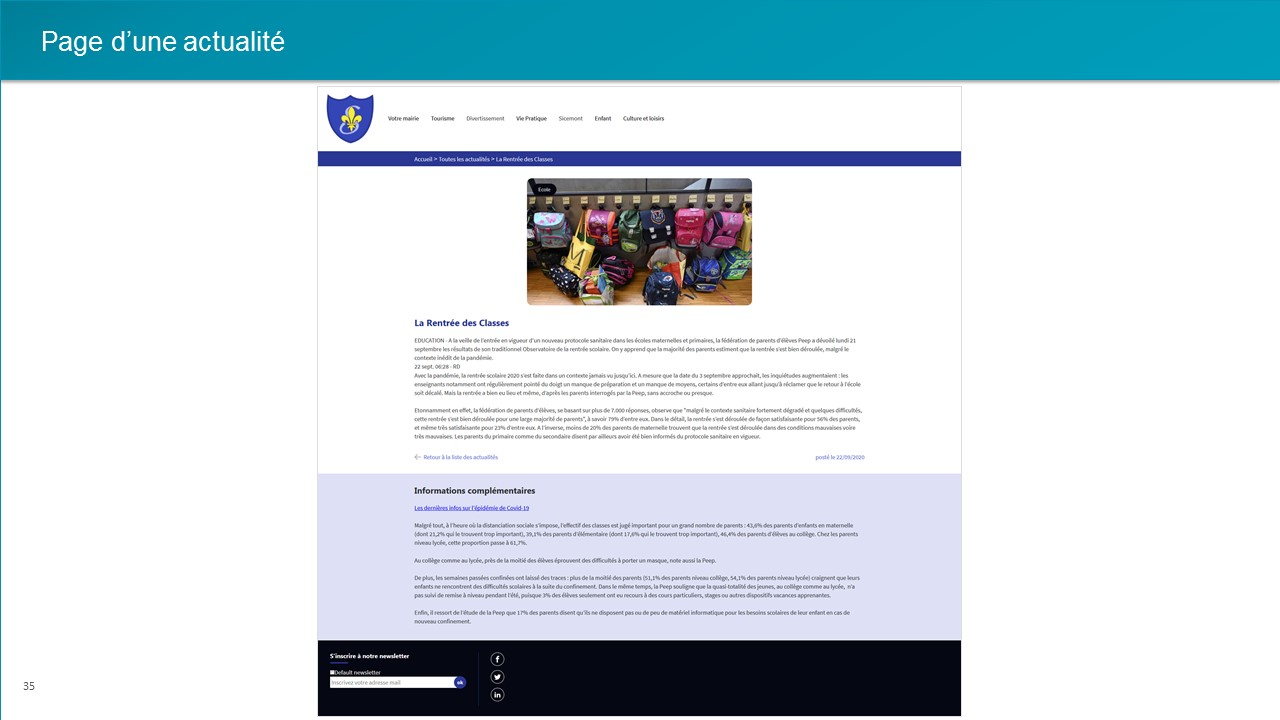 En cliquant sur une actualité, le détails de celle-ci s'affiche :