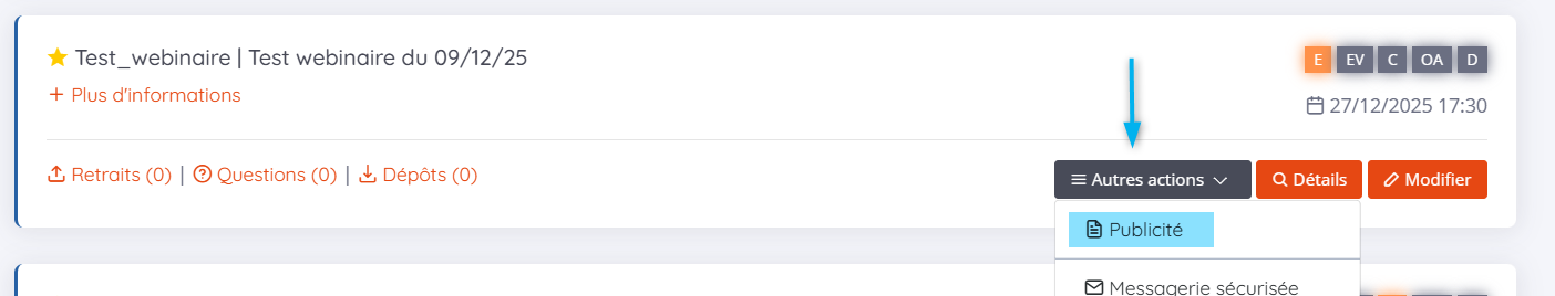 Pour cela, il vous suffit de rechercher votre marché, puis de cliquer sur l'onglet "autres actions", et "publicité".
