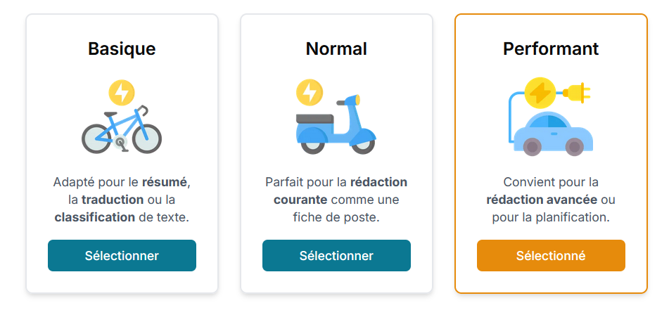 🔹 Basique : pour les résumés, traductions ou classifications de texte.