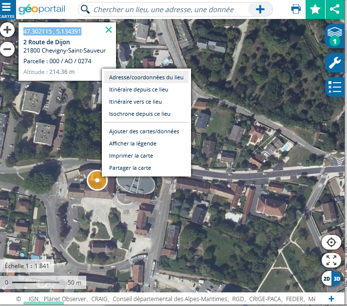 3. Trouver votre latitude et longitude : https://www.geoportail.gouv.fr/