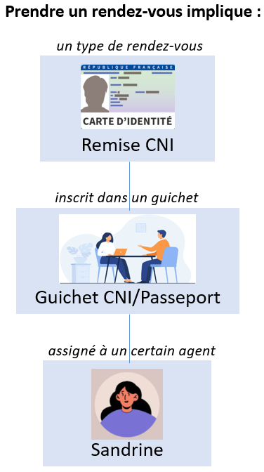 L’heure du rendez-vous est introduite manuellement pour permettre éventuellement de prendre des rendez-vous hors des disponibilités. Par ailleurs, un agent 1 pourra également prendre un rendez-vous à la place d'un agent 2 sauf en dehors des disponibilités de cet agent 2.