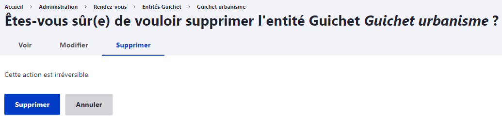 Pour confirmer la suppression définitive du guichet, cliquez sur "Supprimer".
