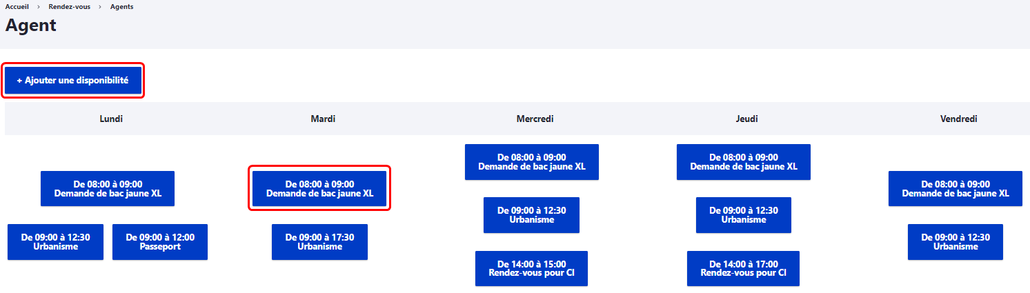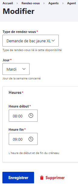 - Pour modifier ou supprimer une disponibilité, cliquez directement sur celle-ci.