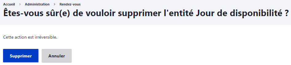 Pour confirmer la suppression définitive de la disponibilité, cliquez sur "Supprimer".