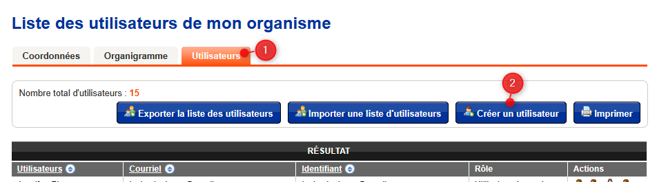 Dans l'onglet "Utilisateurs", cliquer sur le bouton "Créer un utilisateur" :