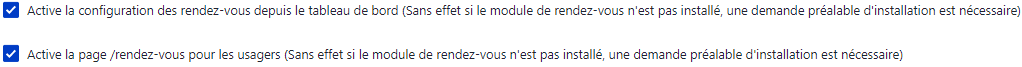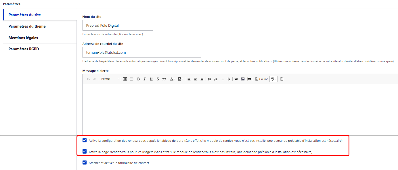 3. Pour activer la page "Prise de rendez-vous" qui donnera accès au formulaire de contact aux citoyens depuis votre site, cochez les première et deuxième cases.