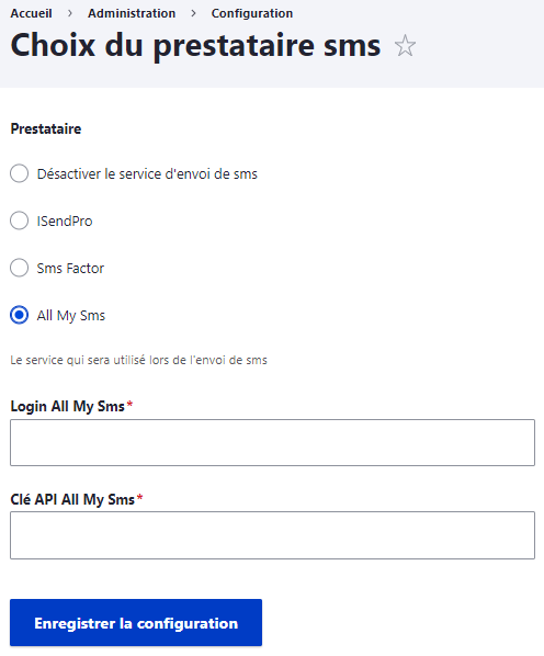 Configuration de l'option SMS