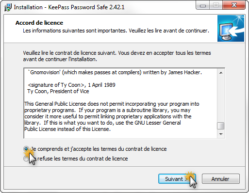Cliquez sur "Je comprends..." puis "Suivant" :