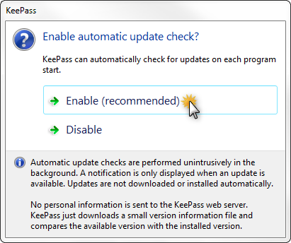 Une fenêtre vous propose d'activer la recherche automatique de mise à jour, cliquez sur la première option (recommandé) :