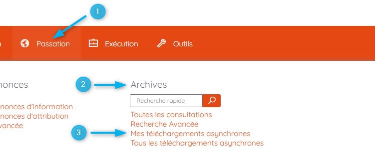 Vous pouvez alors récupérer vos DIC, en retournant sur l'onglet "passation", 'archives" et "mes téléchargements asynchrones" (capture d'écran ci-dessous) :