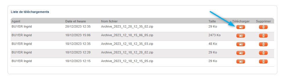 Nota bene : Cette première option vous permet de télécharger DIC par DIC. Si vous souhaitez télécharger l'intégralité de vos DIC, dirigez vous vers le point 4 ci-dessous :
