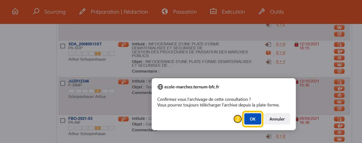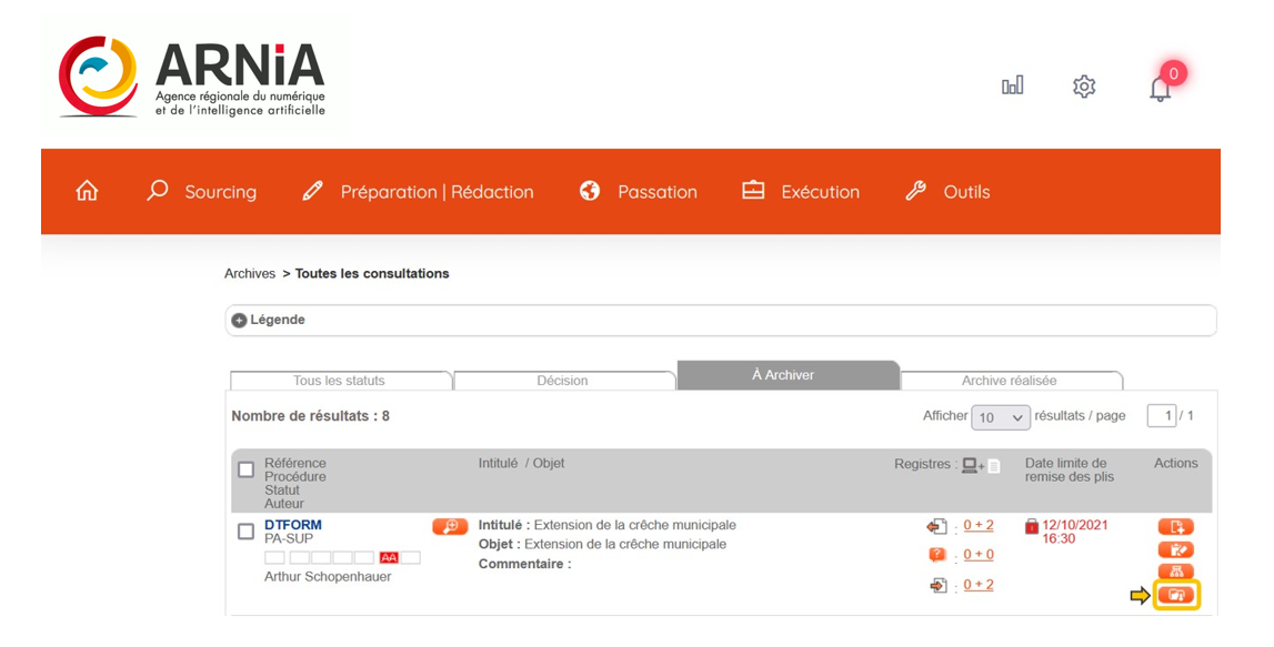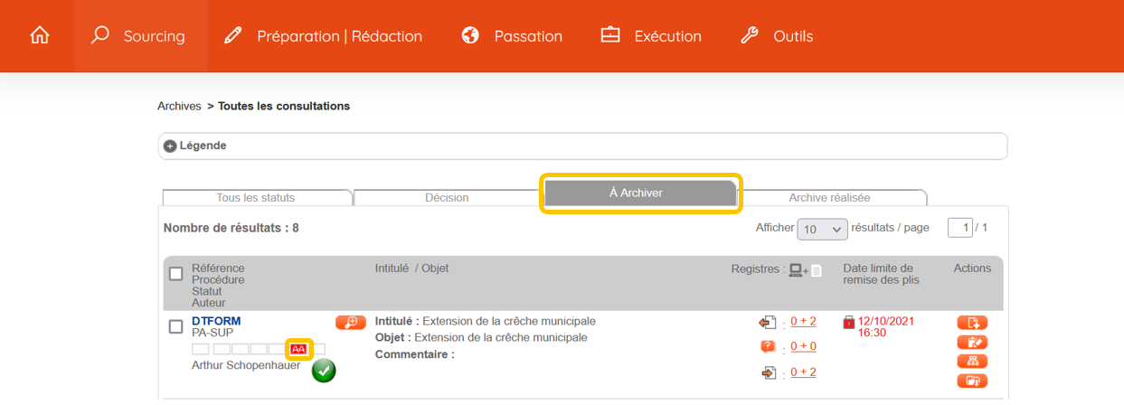 - Cliquez sur le bouton d'action Passer le statut A Archiver