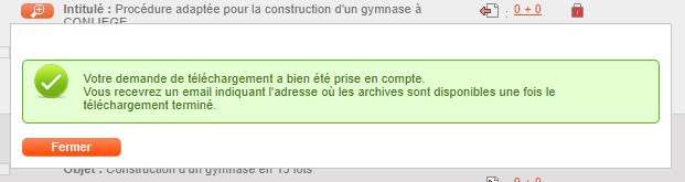Un bandeau vert vient ensuite confirmer votre demande de téléchargement.