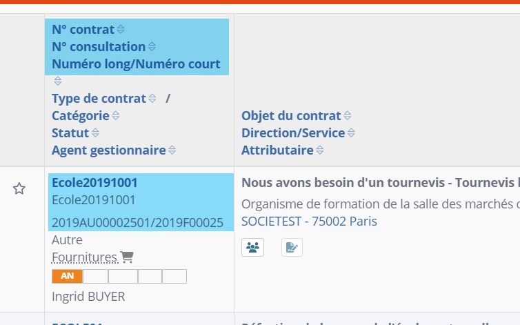 Par défaut Le numéro de contrat reprend automatiquement la référence de la consultation.