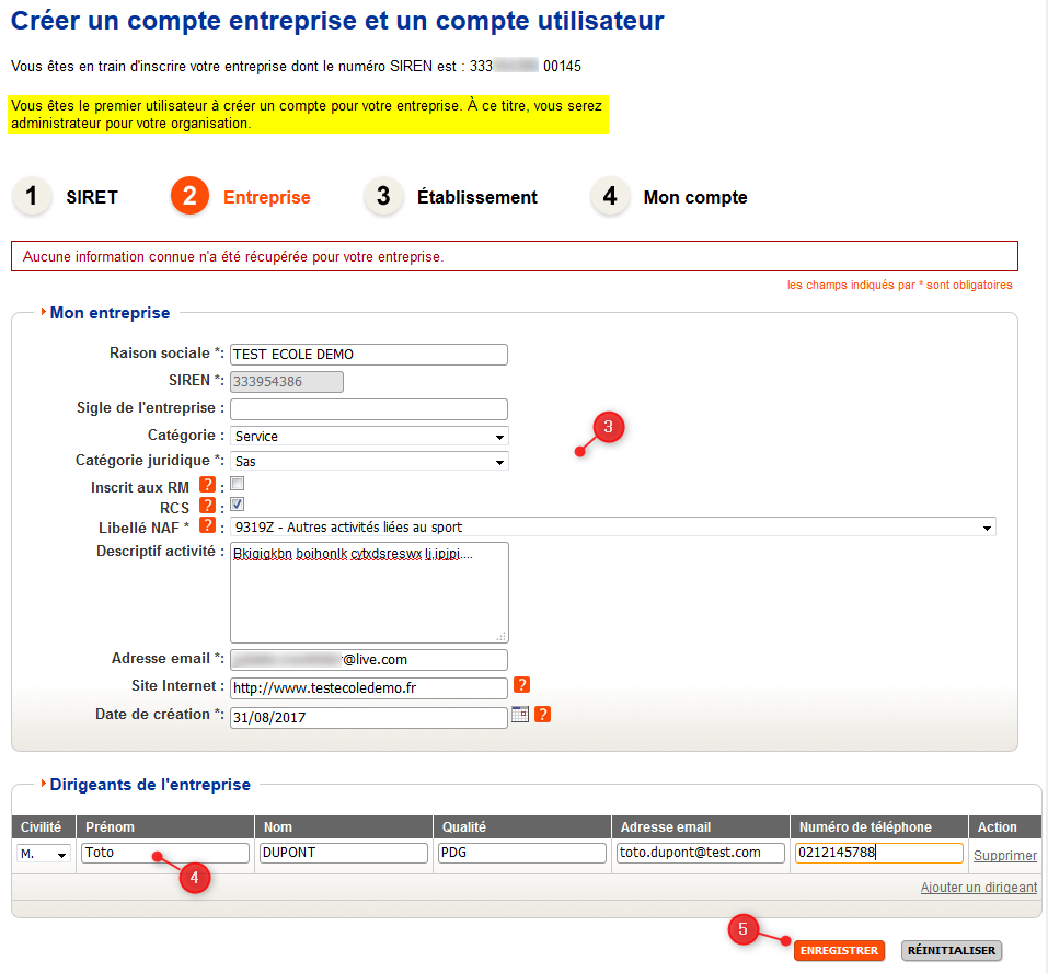 Etape 1 : SIRET