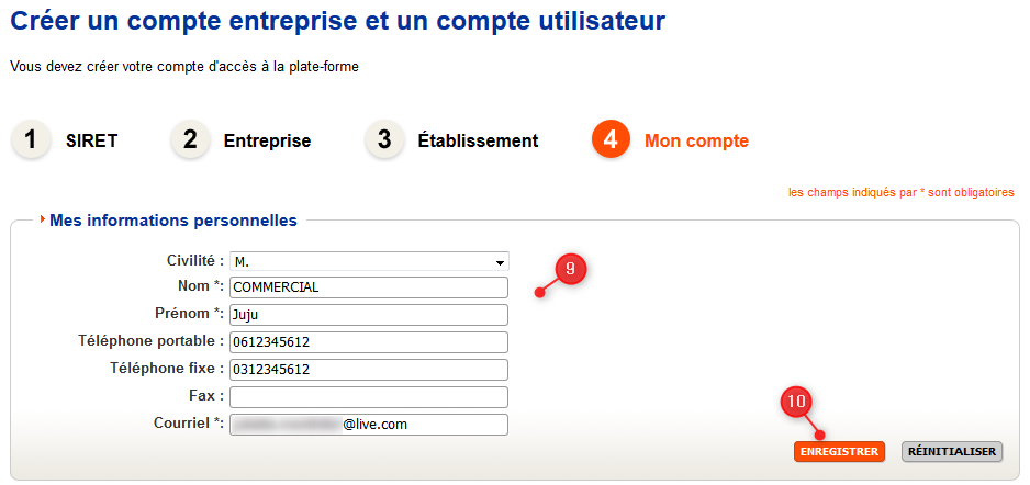 Pour finir, renseignez vos informations personnelles. L'adresse courriel renseignez ici sera votre identifiant de connexion.