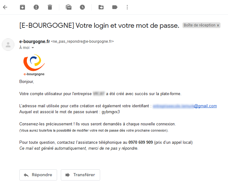 Vous recevez alors un email vous confirmant le bon déroulé de l'opération.
