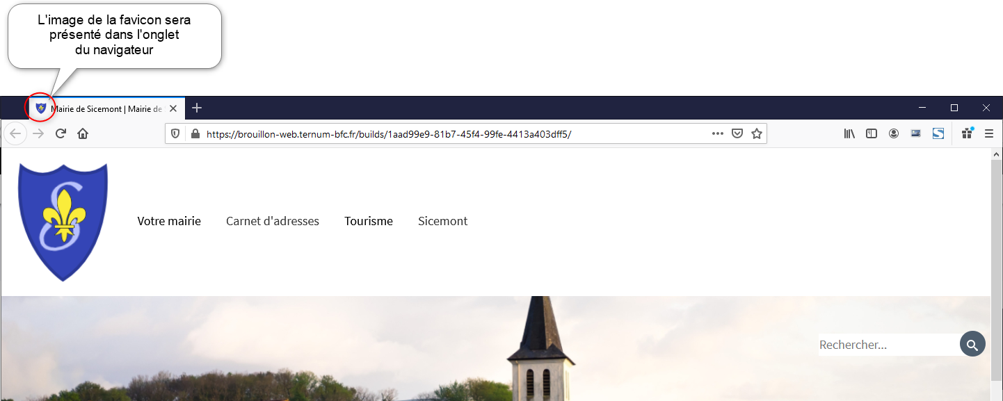 - Un favicon ? L’icône que l’on retrouve à gauche du nom de votre site, dans les onglets de votre navigateur, au-dessus de la barre d’adresse.