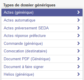 Dans le menu de gauche, vous voyez ensuite les différents modules auxquels vous avez accès. Cela peut être en plus des actes, les factures électroniques, les flux PES, etc... Sélectionner donc actes-generique. Notez que la majorité des utilisateurs envoyant les actes n'ont accès qu'à ce module.