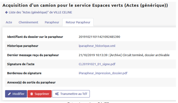 Une fois l'acte acquitté par la Préfecture, plusieurs fichiers peuvent être récupérés.