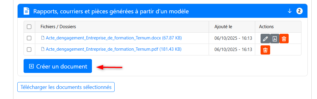 Pour cela, il vous suffit de cliquer sur le bouton "créer un document".