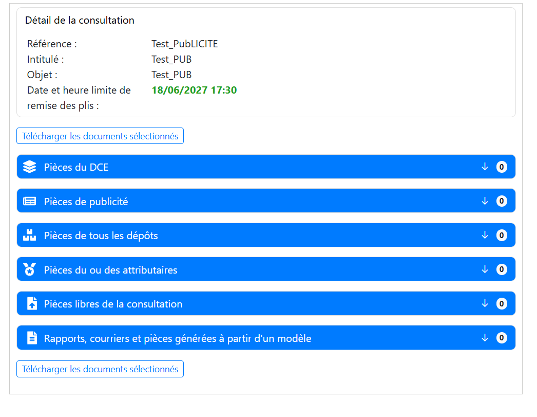 Le dernier bloc qui s'intitule "rapports, courriers et pièces générées à partir d'un modèle" vous permettra de générer un document lié à votre consultation et de le compléter via l'éditeur en ligne (comme par exemple, un courrier de rejet, un courrier d'attribution...).