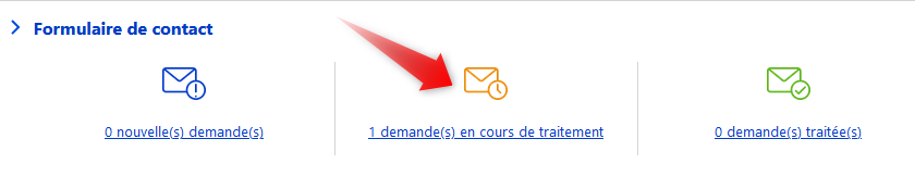 Depuis votre tableau de bord, vous pouvez voir, en dessous des icônes correspondantes, le nombre de : Nouvelles demandes, demandes en cours de traitement et demandes traitées.