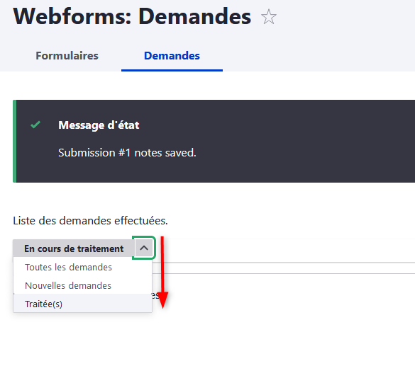 Lorsque la demande est traitée, cochez "Finaliser la demande". Elle se retrouvera alors dans la dernière rubrique des demandes traitées.