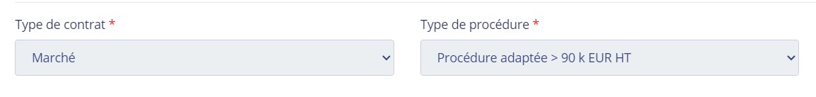 Après enregistrement de ce 1er onglet les champs, "type de contrat" et "type de procédure" sont grisés et ne peuvent plus être modifiés. Si vous vous êtes trompés sur ces champs il faudra créer une nouvelle consultation (Pensez bien à supprimer la consultation erronée).