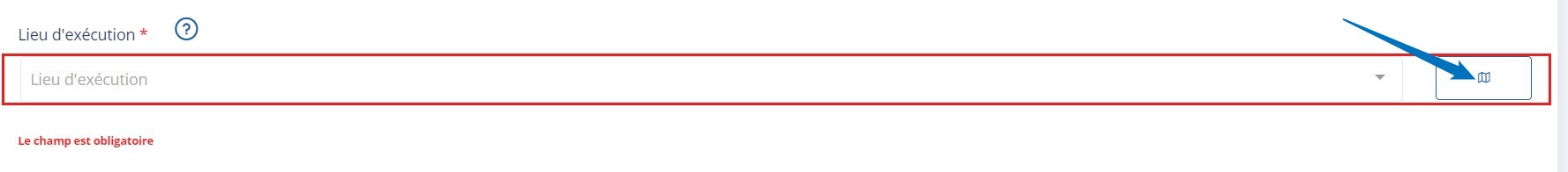 Pour le lieu d'exécution cliquez sur le bouton "carte" qui se trouve à droite de cette case.
