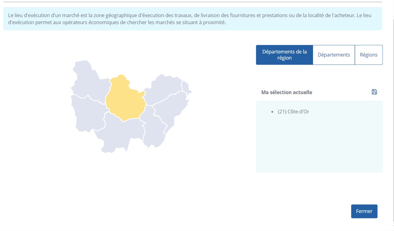 Sélectionnez le département où sera exécuté votre marché.