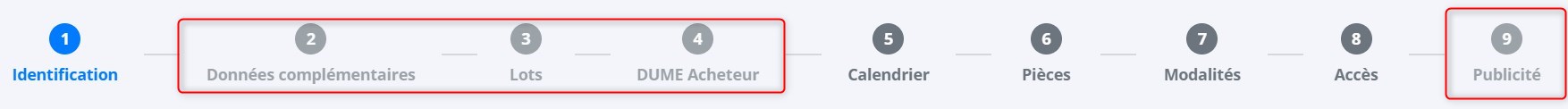 Nota Bene : les onglets du processus s'activent selon votre choix à cette étape "identification".