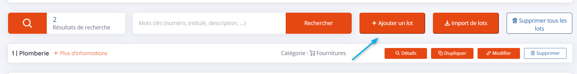 Pour débuter, cliquez sur le bouton "ajouter un lot" :