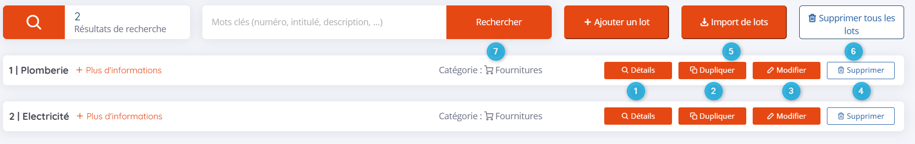- En cas de nombreux lots à créer, importez les depuis un tableur