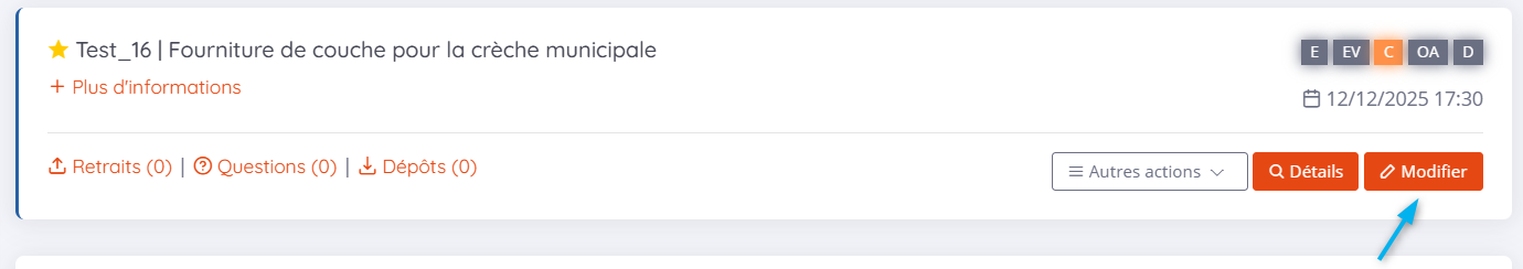 Après avoir retrouvé votre marché, cliquez sur le bouton "modifier".