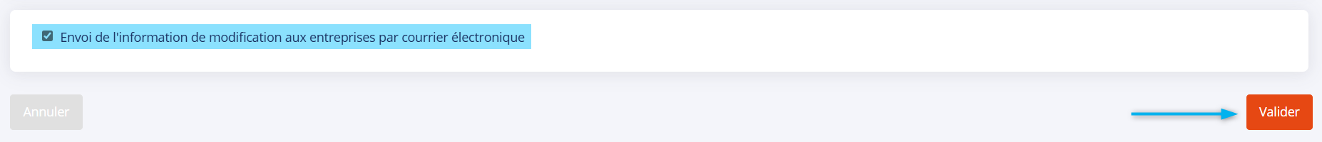 Afin de respecter les principes de la Commande Publique, cochez la case "envoi de l'information de modification aux entreprises par courrier électronique" qui se trouve en bas de votre écran, pour que toutes les entreprises qui ont retirées le DCE aient l'information.