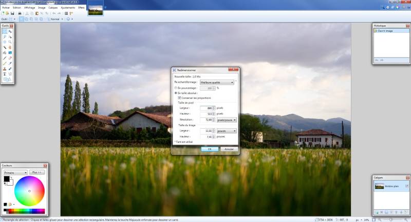 • Paint.net pour Windows ou Paintbrush pour Mac – logiciels gratuit à télécharger. Dans Paint.net vous pouvez modifier la taille et la résolution de vos images dans « Image » puis « Redimensionner ». Il vous suffit ensuite de l’enregistrer.