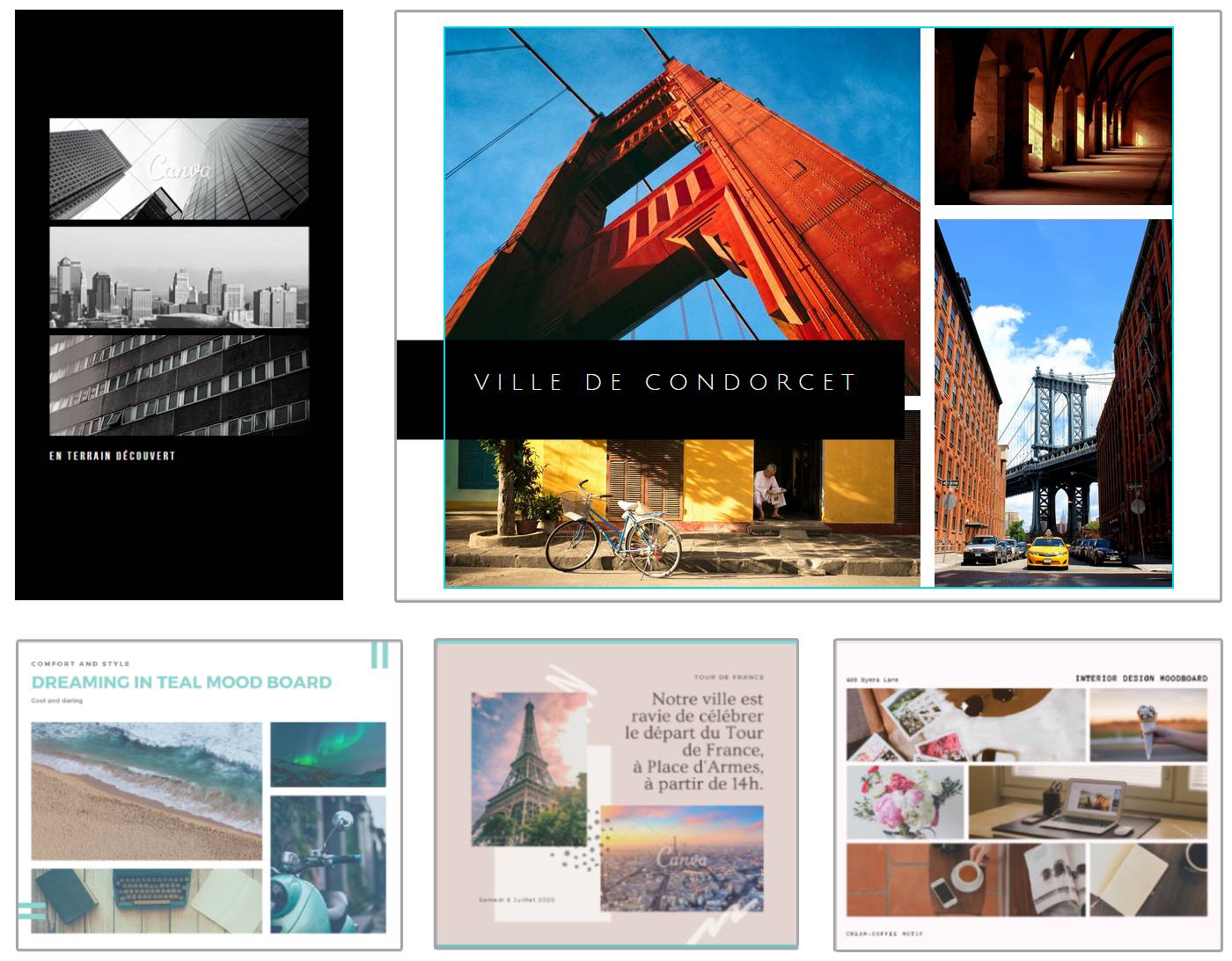 • en bas, de gauche à droite : des images un peu rétro et bleutées; des images de Paris dans des tons rose-mauve et enfin des images bureau et détente dans les tons crème et marrons.