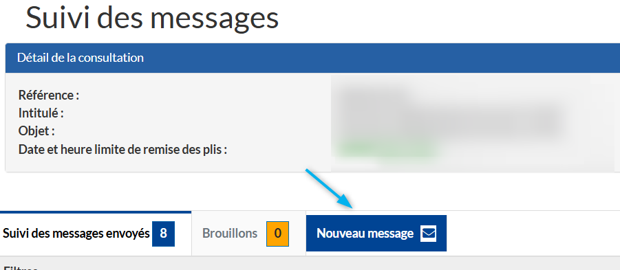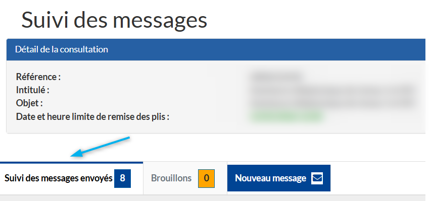 Retrouvez le suivi de vos échanges en cliquant sur le bouton "suivi des messages envoyés".