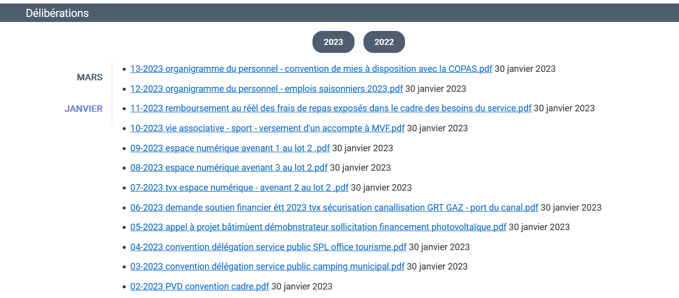 Nous avons ajouté en début une liste de classifications personnalisées qui permettront aux visiteurs de trouver rapidement les actes qu'ils souhaitent consulter.