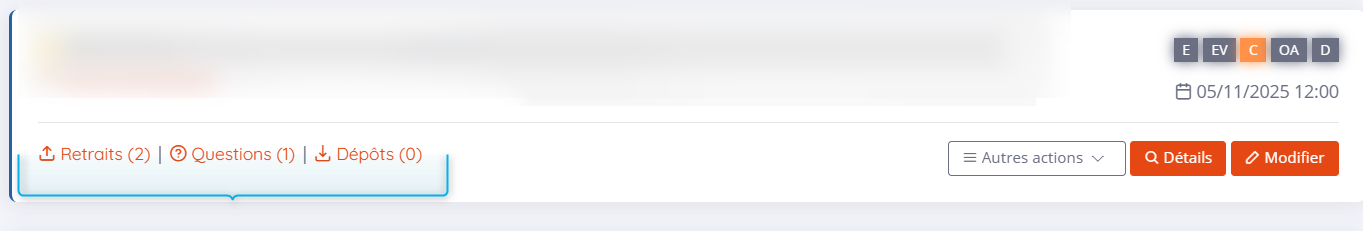 Pour y accéder, cliquez sur les boutons "retraits", "questions" et "dépôts" se trouvant sur le tableau de bord de votre marché.