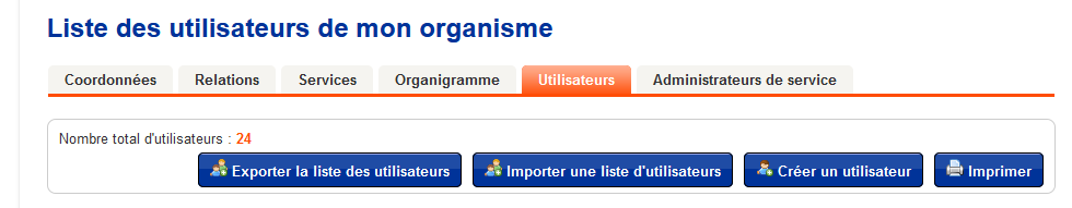 - dans l'administration de l'entité, sélectionner l'onglet "Utilisateurs"
